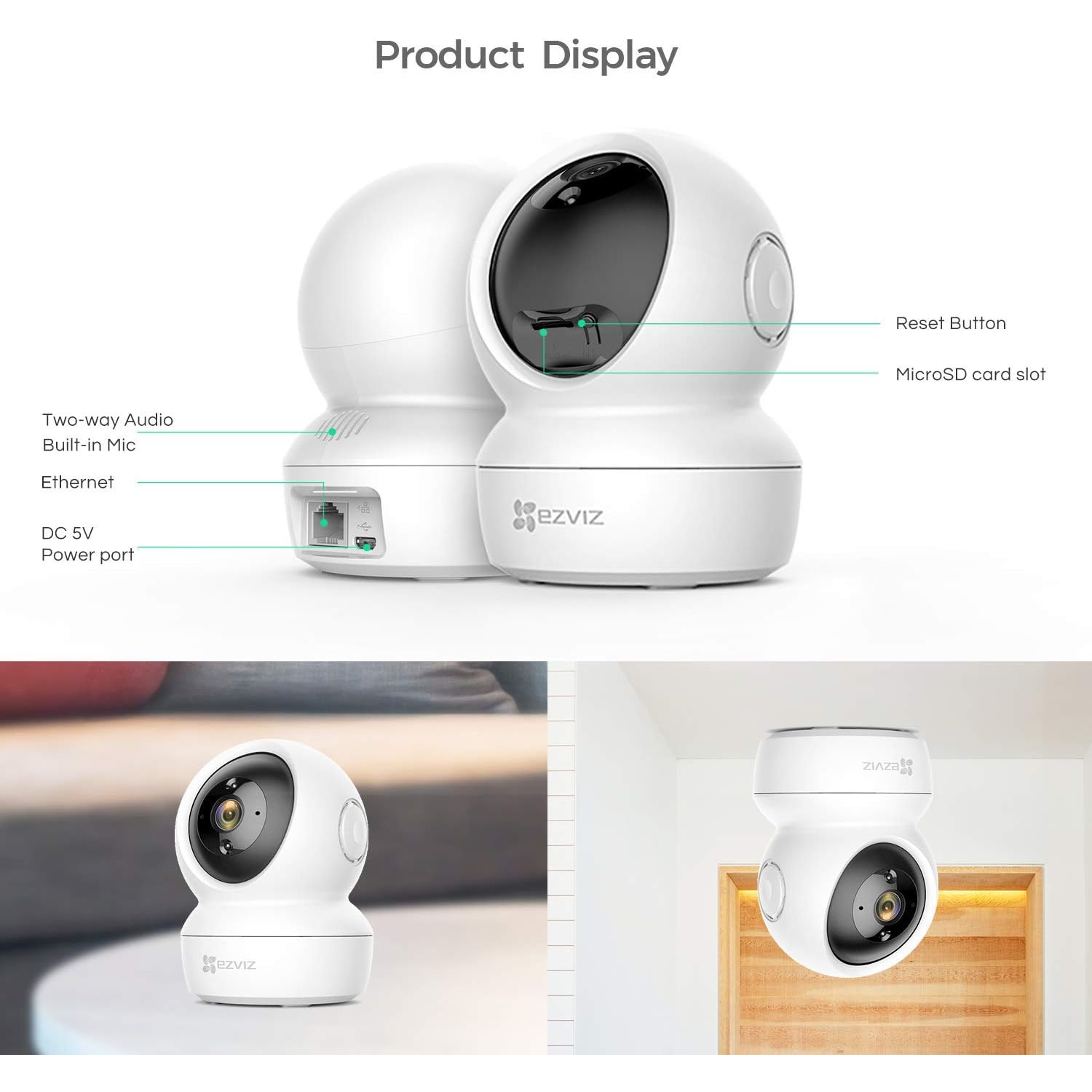 • EZVIZ CS-TY1 4MP TELECAMERA DI SORVEGLIANZA Wi-Fi MOTORIZZATA PTZ 360° PER INTERNO 4Mp 2K Zoom Digitale 4x AUDIO BIDIREZIONALE