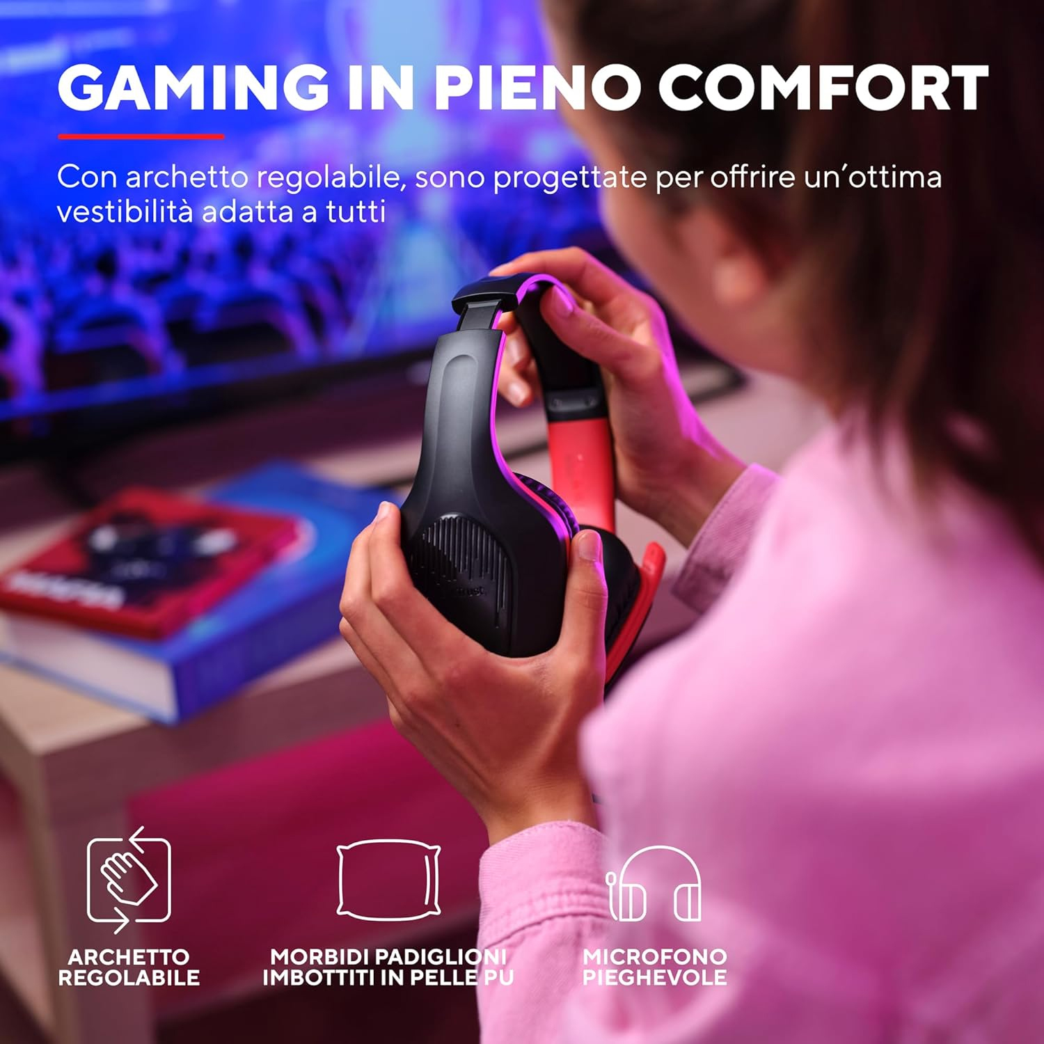 Trust GXT 4155 ZIROX. Tipo di prodotto: Auricolare. Tecnologia di connessione: Cablato. Utilizzo raccomandato: Giocare. Frequenza cuffia: 20 - 20000 Hz. Lunghezza cavo: 1,2 m. Peso: 242 g. Per : PC / PS4 / PS5 / Xbox One / Nintendo Switch
