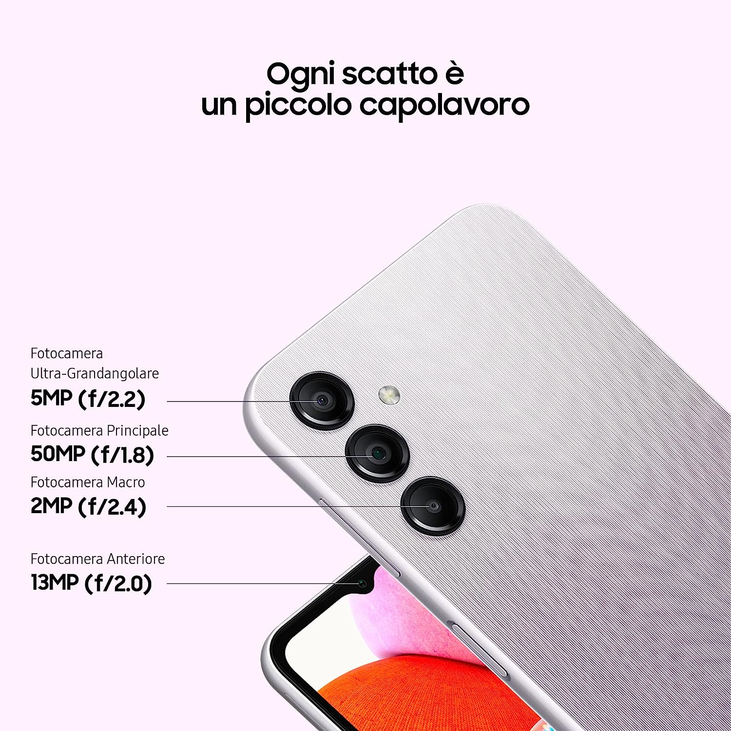 Lavora ai tuoi progetti al meglio sul display Infinity-V di Galaxy A14, grazie alla tecnologia FHD+ i contenuti saranno sempre ad alta definizione. Scopri il sistema multicamera di Galaxy A14 e la fotocamera principale da 50 MP per effettuare scatti e riprese perfetti. Inoltre, la batteria da 5.000 mAh (tipico) ti permette di gestire il tuo lavoro senza preoccupazioni.