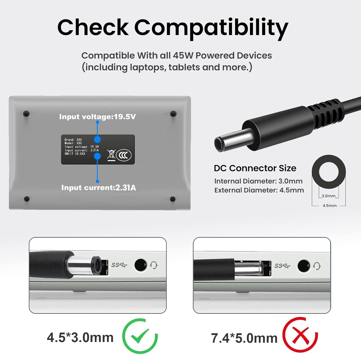 Alimentatore compatibile 45W 19,5V - 2,31A - 4,5*3,0mm serie Dell Inspiron - Latitude - Vostro