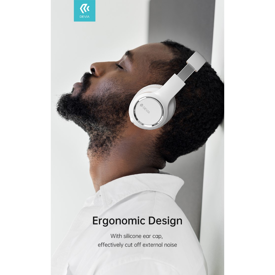 • CUFFIA WIRELESS DEVIA Kintone V2 EM039 BLUETOOTH V. 5.2 RICARICABILE CON PADIGLIONI COLORE BIANCO