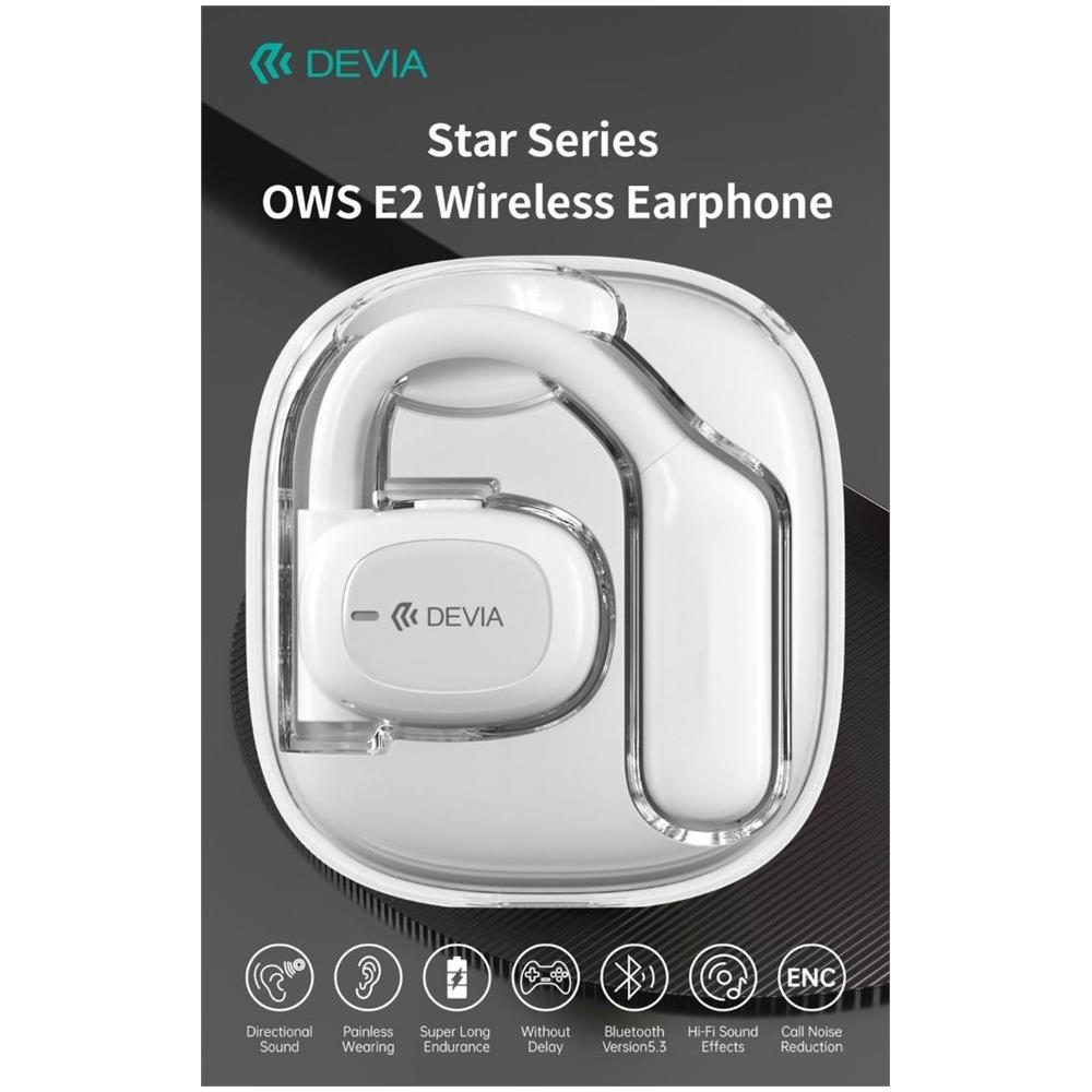 DEVIA Star E2 sono cuffie over-ear Bluetooth 5.3 OWS con box di ricarica. Le cuffie supportano la tecnologia OWS (Over-ear Wireless Stereo): entrambe le cuffie si collegano tra loro per creare un set stereo wireless. Una scatola portatile con batteria integrata, oltre alla funzione di ricarica, consente di riporre in sicurezza le cuffie in tasca, in borsa o nello zaino. Libera le mani e ascolta musica, radio su Internet mentre lavori, cammini, ti alleni o guidi un'auto. Le cuffie DEVIA Star E2 OWS sono la soluzione ideale per gli utenti di smartphone, computer, notebook, tablet e altri dispositivi abilitati Bluetooth. Sono compatibili con la maggior parte dei dispositivi Android e iOS. Le cuffie hanno anche un microfono, quindi puoi effettuare facilmente chiamate vocali. La durata delle chiamate/ascolto della musica con una carica completa è di circa 720 minuti (a seconda del livello del volume), grazie all'utilizzo della tecnologia Bluetooth 5.3 a risparmio energetico.