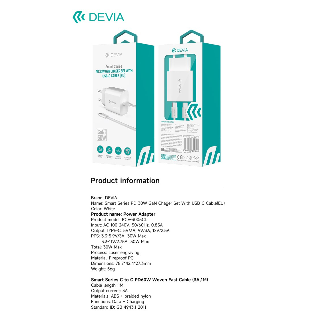 Set Carica batteria rapido PD 30W GaN e Cavo da Tipo-C ad Type-C