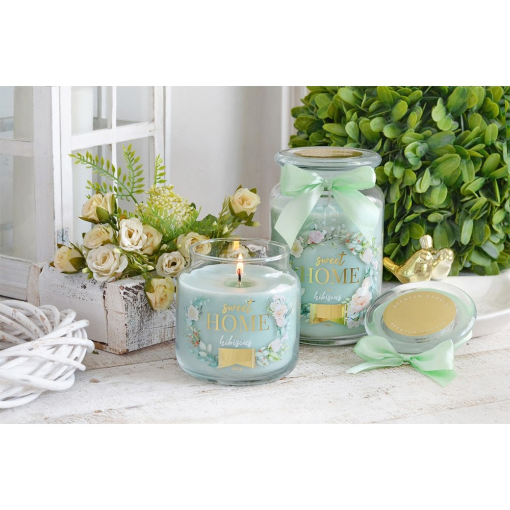 Adatta zona: Giorno - Benessere - Stoppino: Cotone - Tipo Cera: Paraffina raffinata - Durata: 80h | Profumazione ibisco. Un ricco mix tropicale di fresca acqua di laguna e ibisco completamente sbocciato.