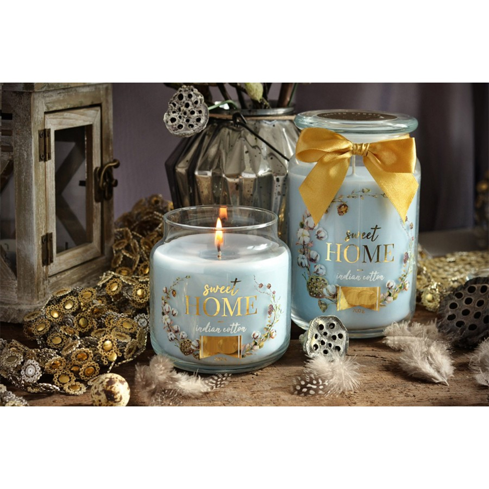 Adatta zona: Giorno - Benessere - Stoppino: Cotone - Tipo Cera: Paraffina raffinata - Durata: 120h | Profumazione INDIAN COTTON - (Cotone Indiano). Riproduci nel tuo ambiente il profumo di un campo di cotone indiano.