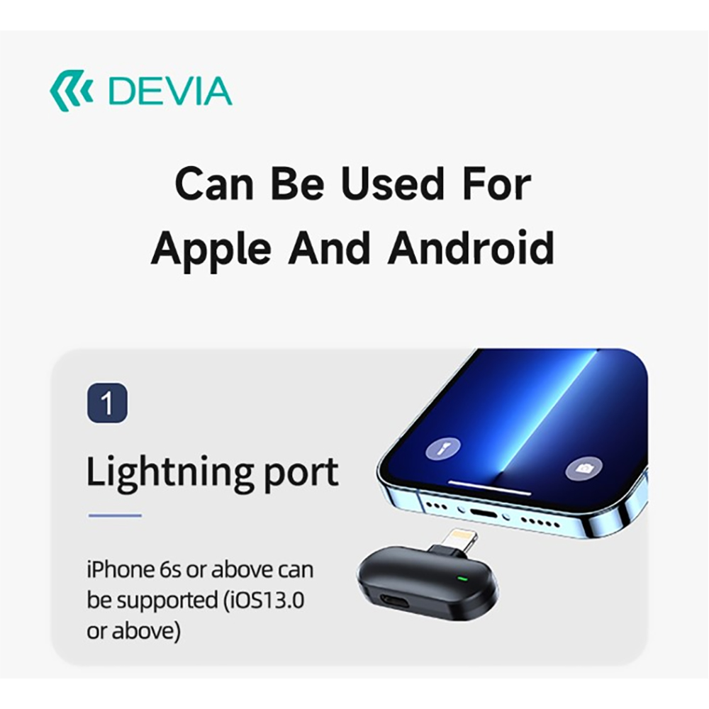 Doppio microfono wireless con connessione Lightning Apple - Studio/Podcast - Lunga durata della batteria e ricarica rapida - Qualità del suono eccezionale - Con custodia di ricarica