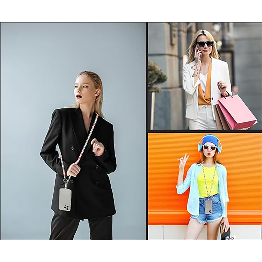 -Materiale standard: la collana per cellulare con perle colorate è realizzata in plastica, lucidata con strumenti di precisione e tramite processo di galvanizzazione, in modo che ogni perla sia rotonda, liscia, piena e lucida. La catena è solida, durevole e non facile da rompere. La cinghia per cellulare è realizzata in nylon, resistente all'usura e all'allungamento, morbida e confortevole.