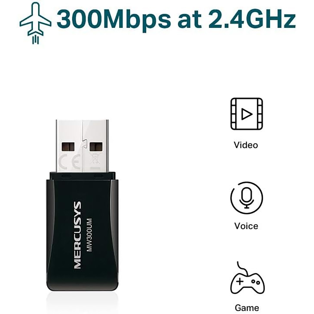 Il mini adattatore USB wireless N MERCUSYS MW300UM consente di connettere un computer desktop o notebook ad una rete wireless e l'accesso ad una connessione Internet ad alta velocità. E' stato progettato per essere il più pratico possibile.