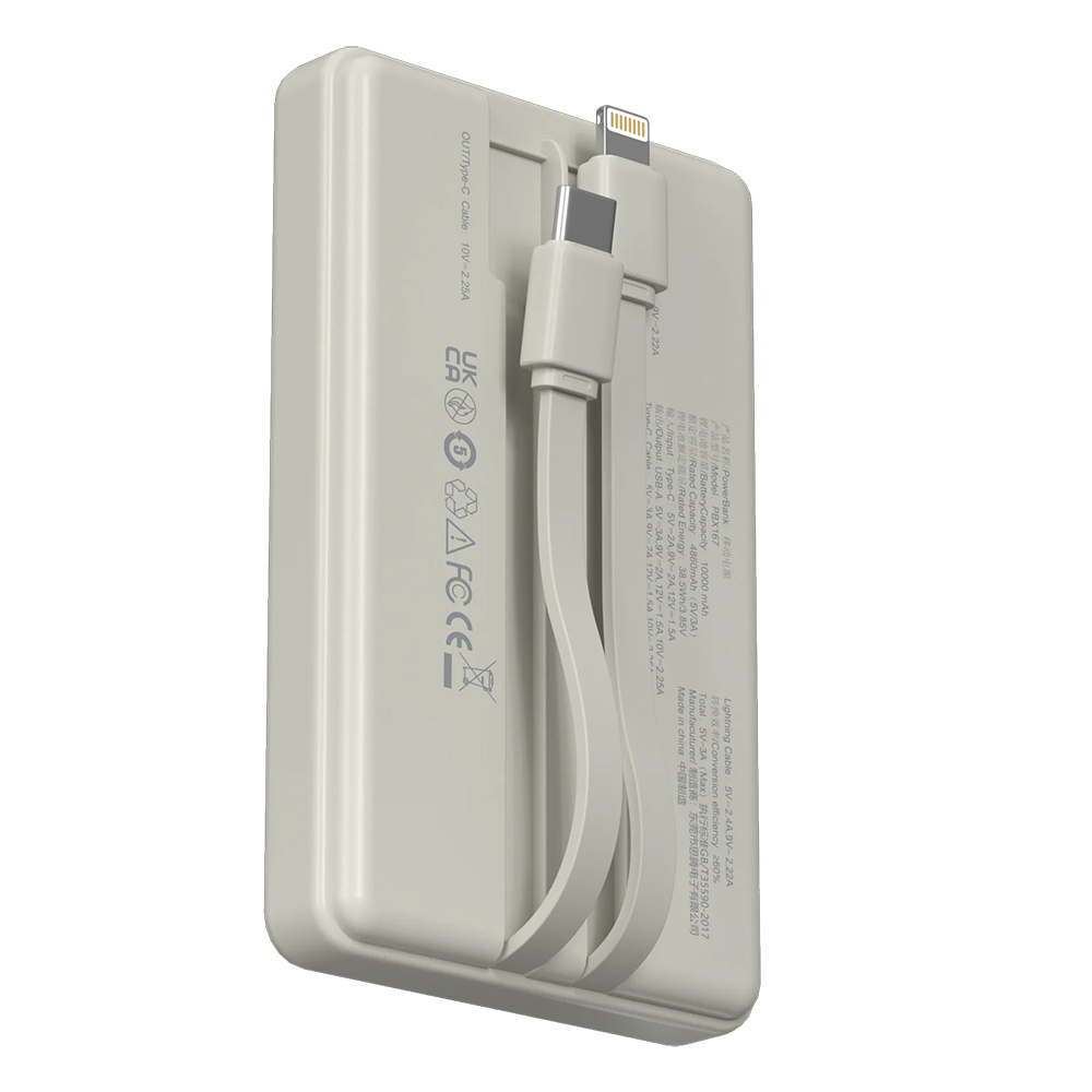 DEVIA Power Bank 10.000 mAh 22,5W Carica rapida Avorio con due Cavi Tipo-C e Lightning