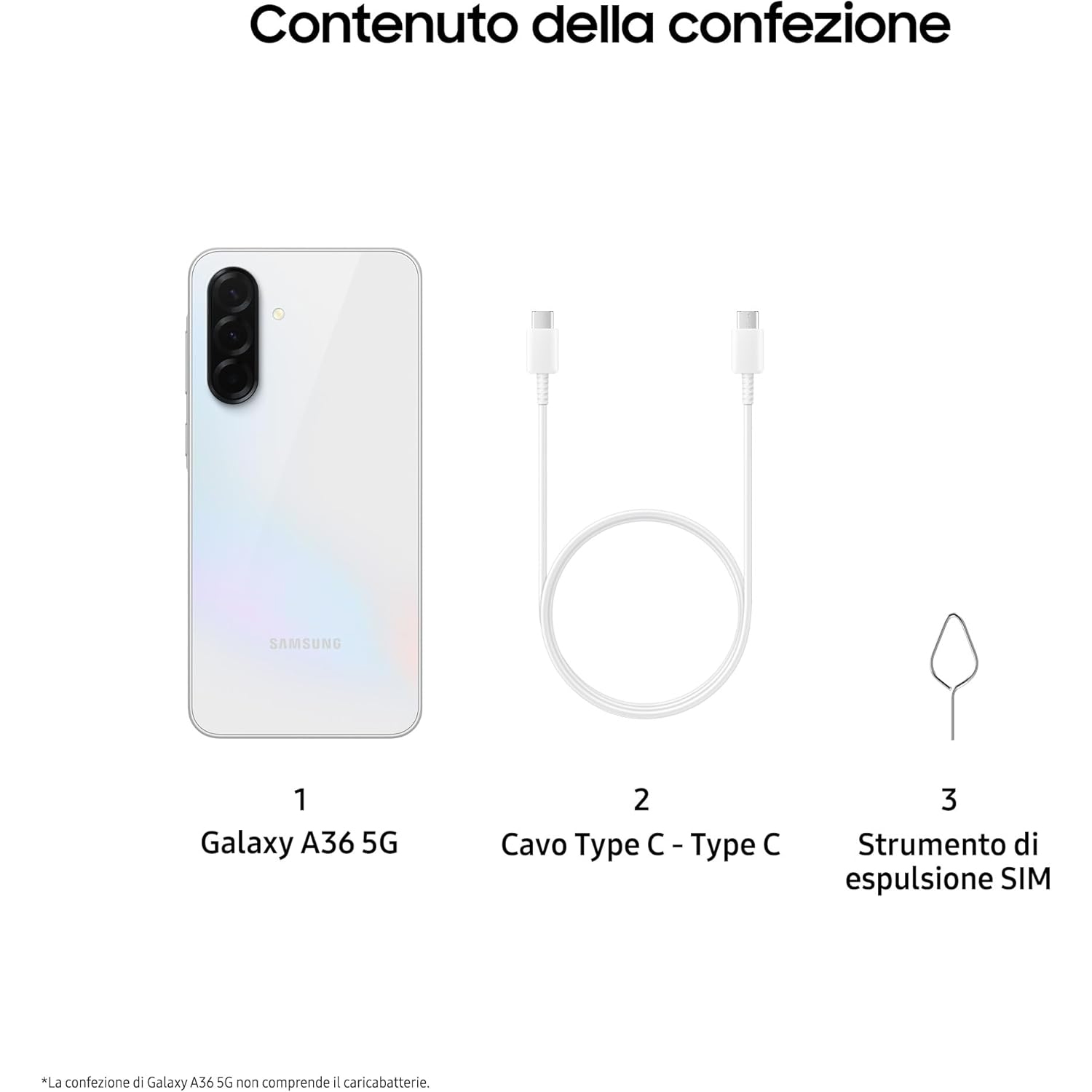• CELLULARE SMARTPHONE SAMSUNG Galaxy A36 5G SM-A366B/DSN DISPLAY 6.7" 6GB/128GB DUOS COLORE AWESOME WHITE GARANZIA TIM