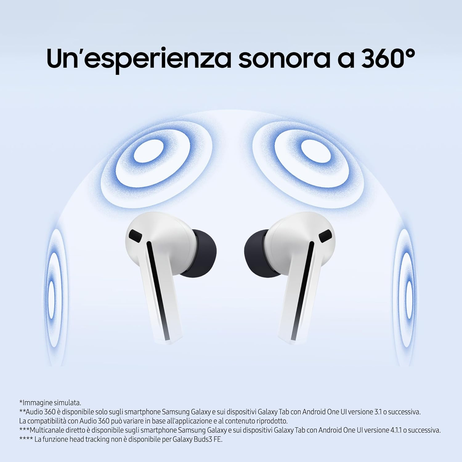 I nuovi auricolari Galaxy Buds3 FE uniscono design raffinato e tecnologia avanzata per un esperienza d ascolto senza compromessi. Con la loro finitura opaca dal look minimal ed elegante e la forma ergonomica, garantiscono comfort prolungato, vestibilità sicura e qualità sonora ottimale. Il suono bilanciato con bassi profondi e dettagli definiti regala un audio dinamico e coinvolgente, arricchito dalla modalità Audio 360 per un effetto spaziale immersivo. Grazie alla Cancellazione Attiva del Rumore (ANC) puoi ridurre al minimo i rumori indesiderati, mentre il Controllo Touch intuitivo ti permette di gestire la musica con semplicità. Con i tuoi Galaxy Buds3 FE puoi anche parlare con Gemini, attivando l assistente con un semplice Hey Google per ricevere supporto in ogni momento. Infine, la connessione rapida e il passaggio immediato tra dispositivi Galaxy ti offrono un esperienza fluida e continua, ovunque ti trovi.