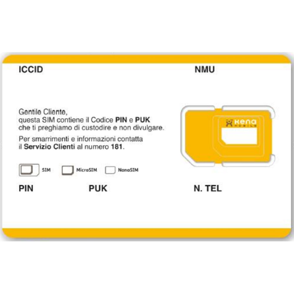 Scheda SIM KENA 5G. La SIM va attivata presso un centro KENA abilitato o presso il nostro punto vendita centro KENA.