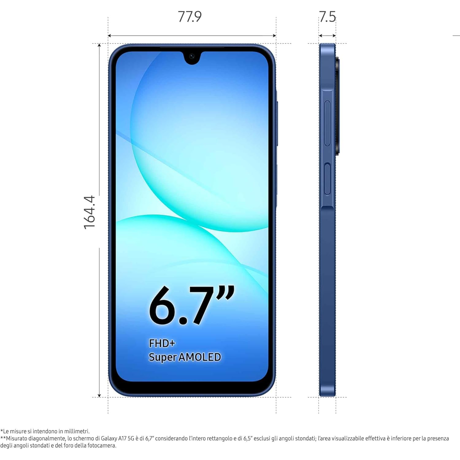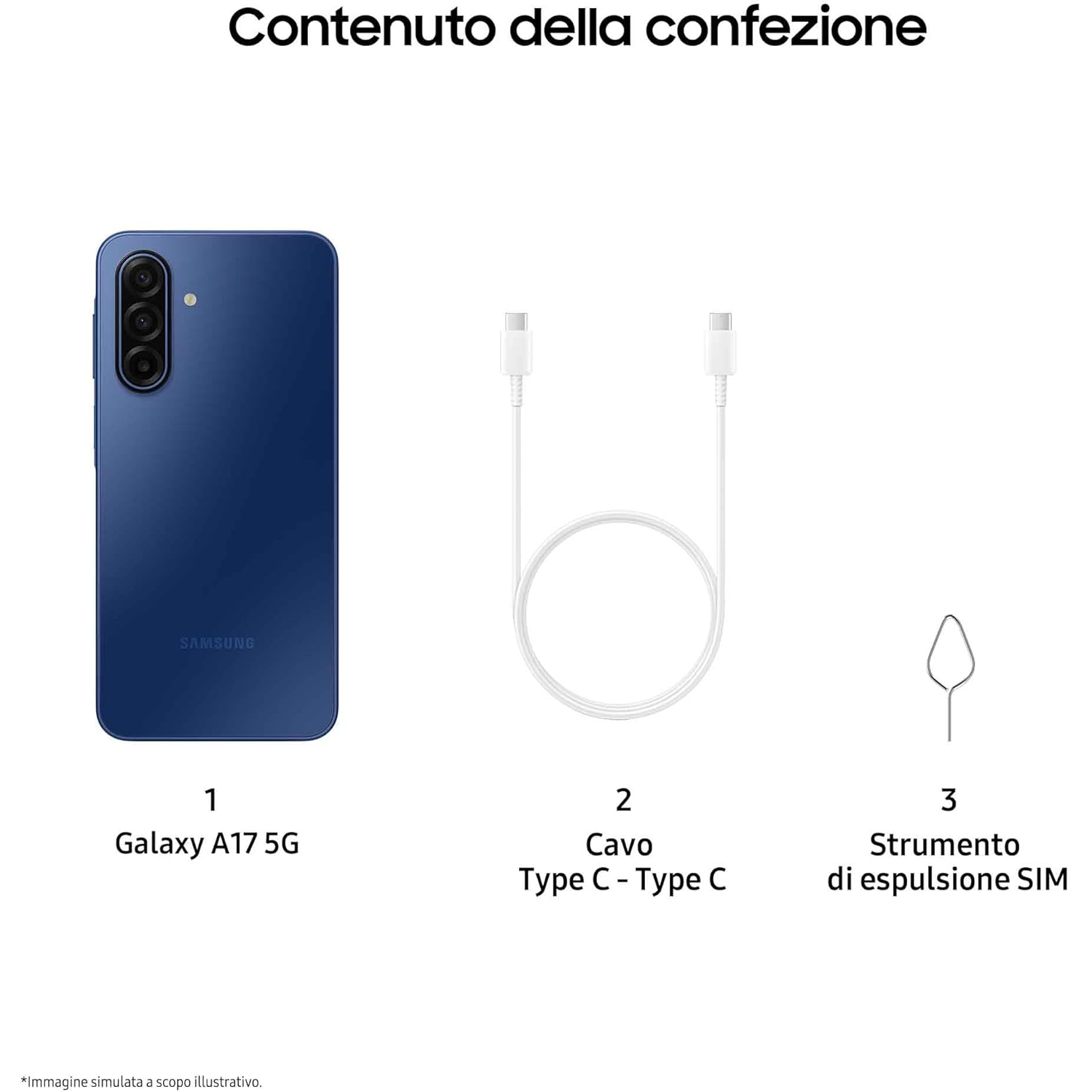• CELLULARE SMARTPHONE SAMSUNG Galaxy A17 5G SM-A176B DISPLAY 6.7" 4GB/128GB DUOS COLORE BLUE GARANZIA EUROPA